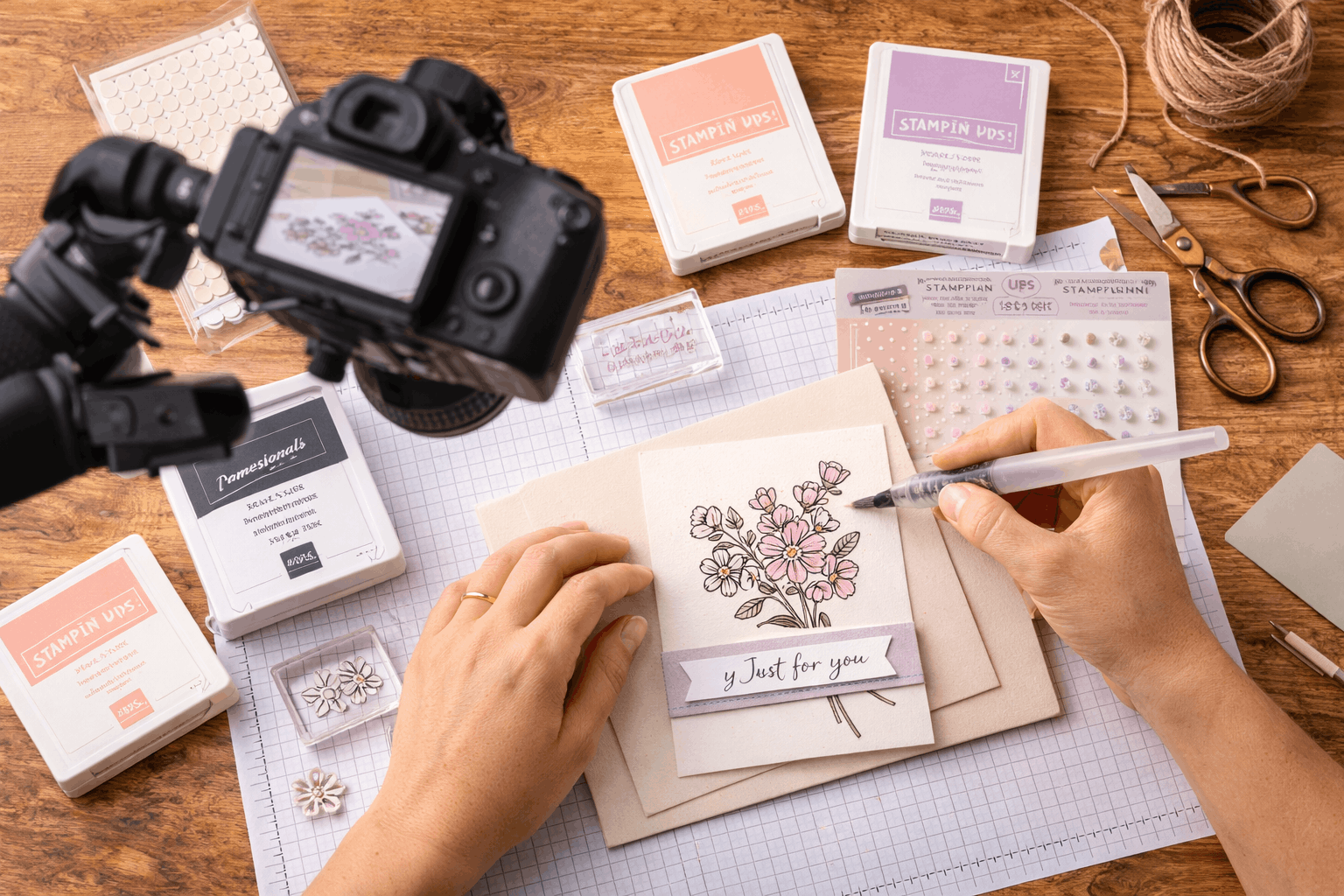 Des kits complets imagines et fabriques par mes soins, avec les produits Stampin’Up! Tout est pret pour creer : papiers coordonnes, embellissements et instructions detaillees.